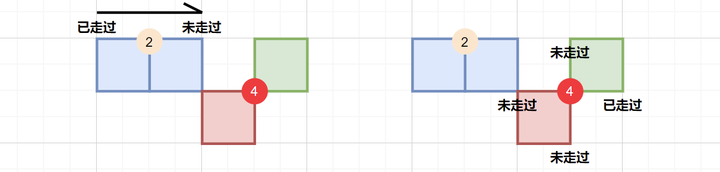 • 对于自交的情况,此时两个方块以对角形式连接,需要正确处理顶点重叠的问题