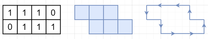 本文试图研究这样一个问题:给定一个Tilemap,如何提取出它对应的Polygon Shape。这个polygon对应了Tilemap的碰撞边界,可以被 box2d 等物理引擎所使用。一个简单的例子如下图所示。